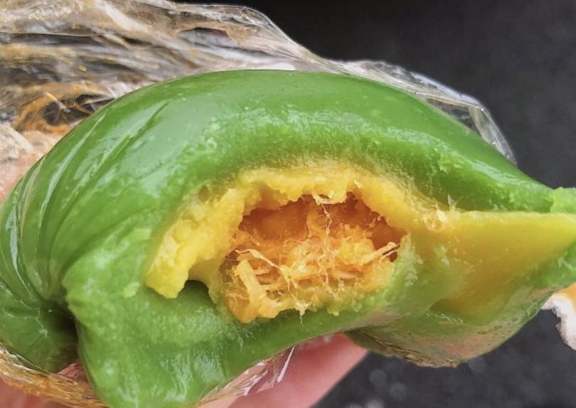 奶酥青团也很可,糯叽叽星人必买!青团有股艾草的清香,咸蛋黄咸咸粉粉的,奶酥和肉松格外有存在感,用料很扎实!