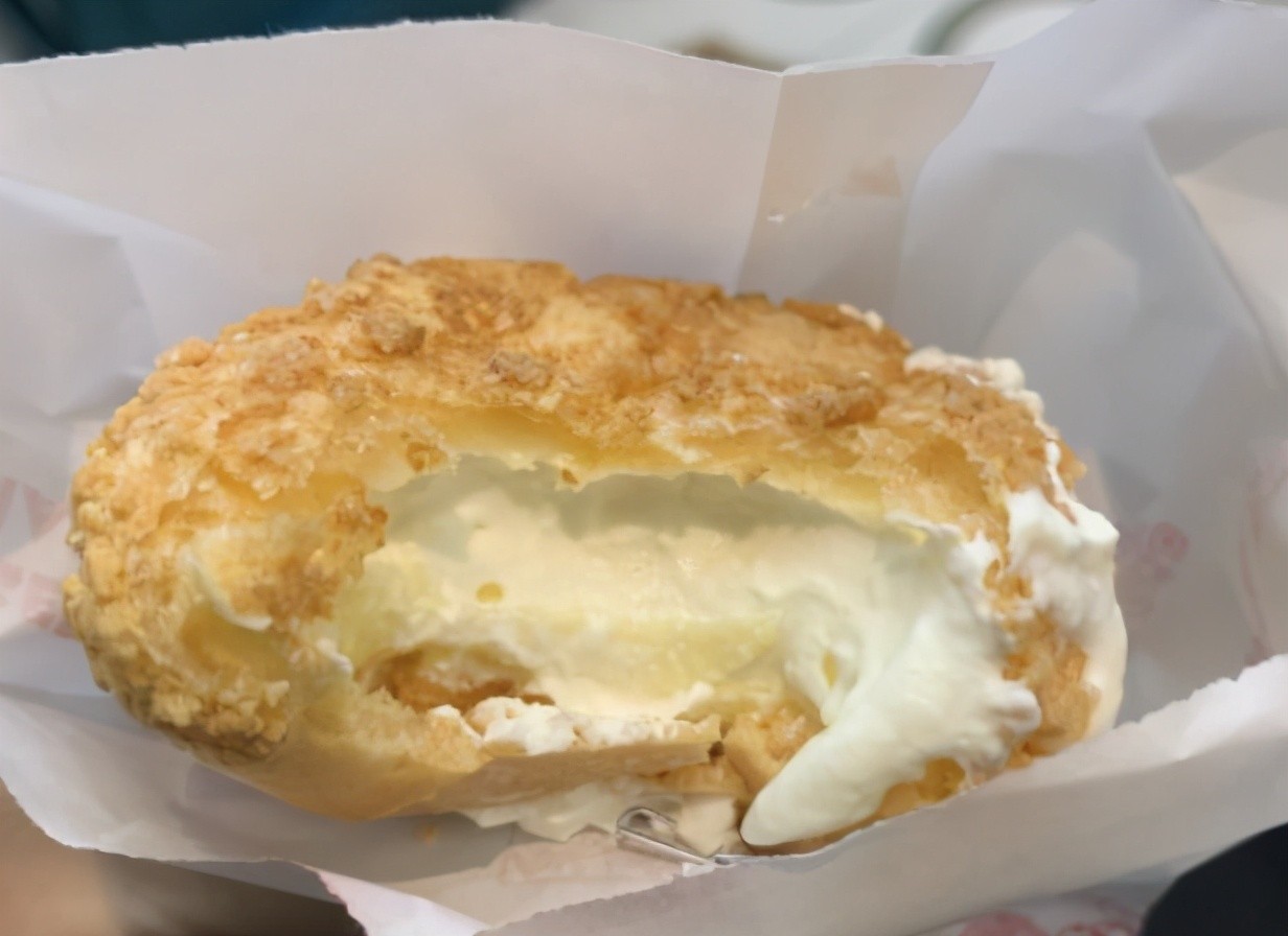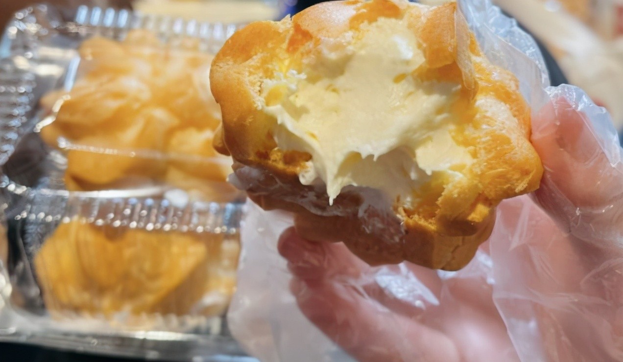 要靠抢的纯乳脂酥皮奶油泡芙,经常卖断货,店员会提示最佳赏味期是拿到手的半小时内吃完,不然会降低酥皮和奶油的口感,但是实在吃不完冷藏了味道也挺棒的,一口爆浆!