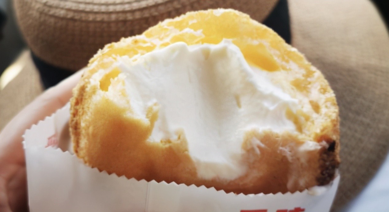 拳头大的泡芙,外面是有一点酥软的皮,里面的奶油很像冰淇淋的口感,香草味和奶香味融合,一口下去奶油都要溢出来。泡芙很大一个,一次吃两个也不会觉得腻。