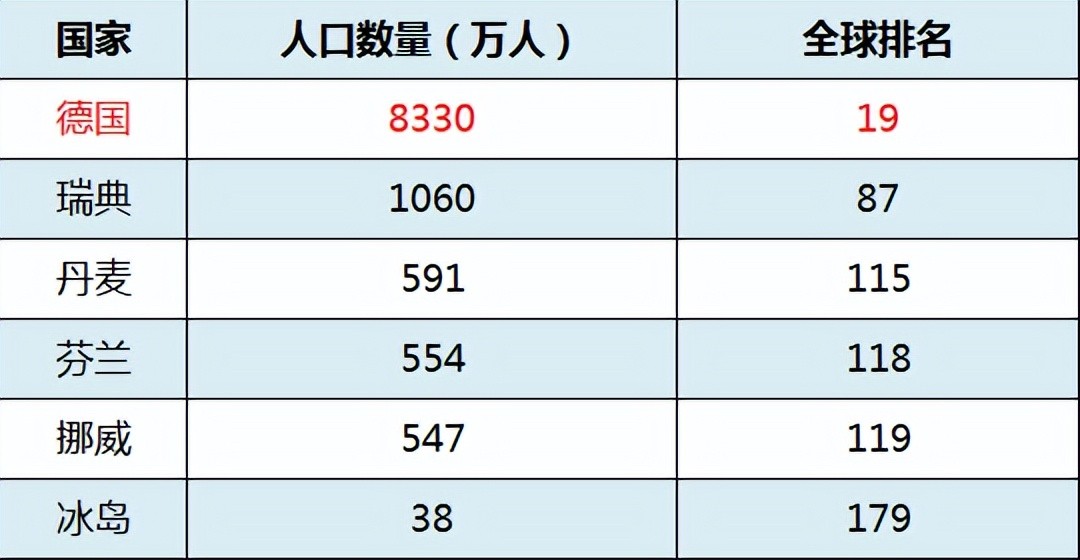 而德国的人口数量为8330万人,位列全球第19位。