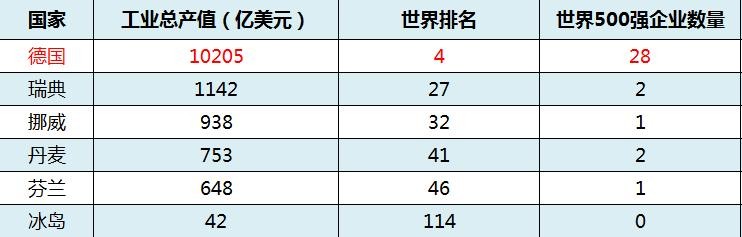综上所述,在工业实力上,德国完胜北欧五国。