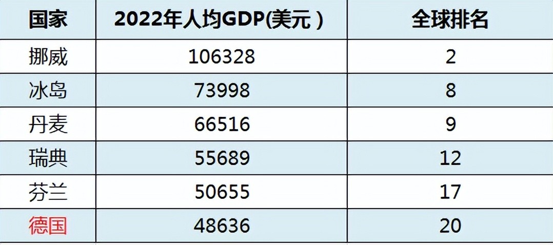 而德国2022年人均GDP为48636美元,居全球第20位。