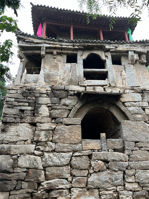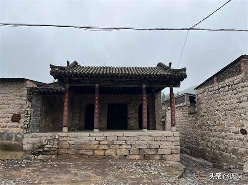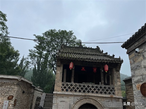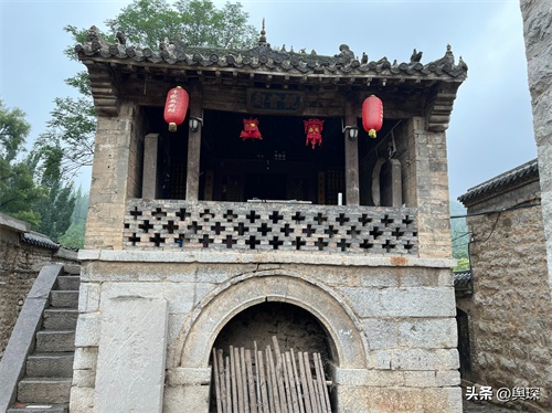 上图中的洞就是村南门的门洞,以前的村民从村南边进出村,必须经过这个门洞。观音阁的对面是坐北朝南的古戏台-蜃气楼。蜃气楼,意味“虚幻的世界”,是全村的文化活动中心。戏台下的小广场有一眼井,在没有音响设备的古代,戏台下的水井是天然的传声器,能形成声音共振的效果,使戏台上的声音能够很好地传递给台下的观众。