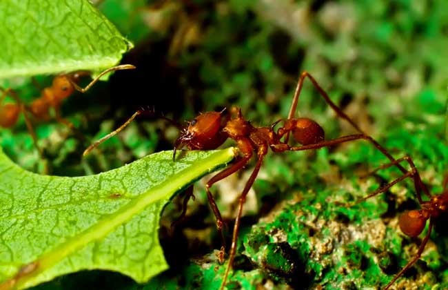 从名字上看切叶蚁似乎是一种吃树叶的蚂蚁,其实不然,它们并不会直接吃叶片,而是将树叶切成无数个小片带回蚁穴里种植发酵,直到上面长出小蘑菇,然后用蘑菇喂养幼虫。成虫主要吸食被它们切碎的叶片中流出的汁液。切叶蚁这样的食性会破坏一些植物,包括农作物,所以很多地方将切叶蚁认作破坏农作物生长的害虫