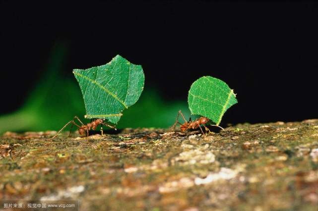 切叶蚁((Leafcutter Ant)从树木和其它植物上切下叶子,将叶片用来种植真菌。它们用长出的真菌喂养幼虫(成虫主要是吸食被它们切碎叶片的汁液)。