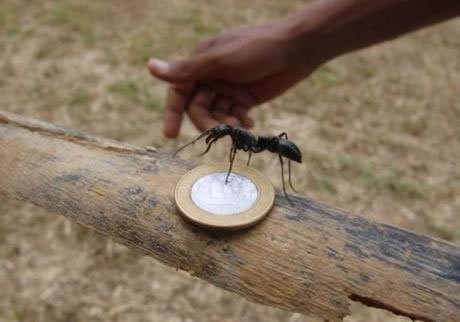看下图片就知道这只蚂蚁有多长了,据说是世界上最大的蚂蚁之一,生活在亚马逊丛林,赶快庆幸你们那里没有这种蚂蚁吧!