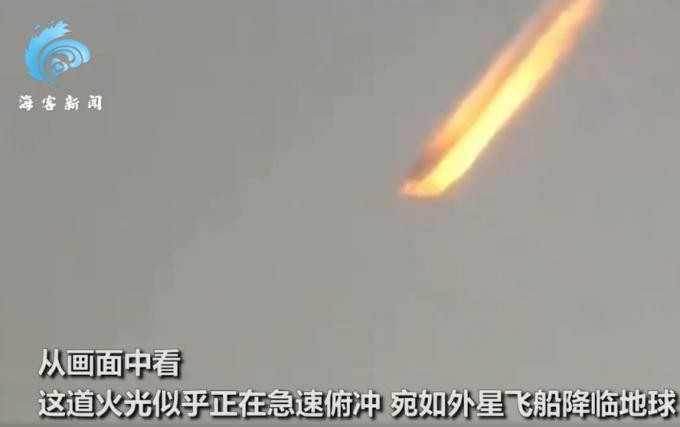 从画面中看,这道火光似乎正在急速俯冲,宛如外星飞船降临地球。