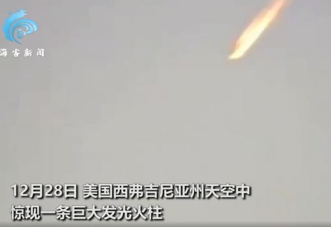 12月28日,美国西弗吉尼亚州天空中,惊现一条巨大发光火柱。