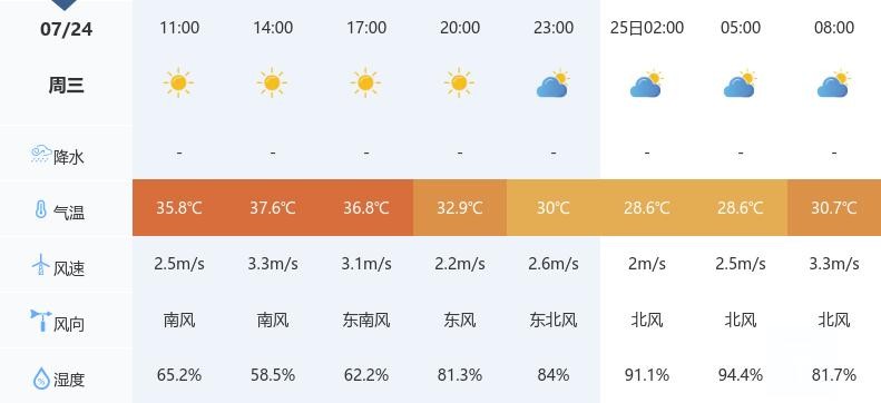 今天是2024年7月24日,天门天气晴朗,气温较高,白天最高气温预计37℃,最低气温28℃,微风,空气湿度67%,体感温度40.4℃。因气温较高,市民朋友们应注意防晒补水,减少中午时段的户外活动。