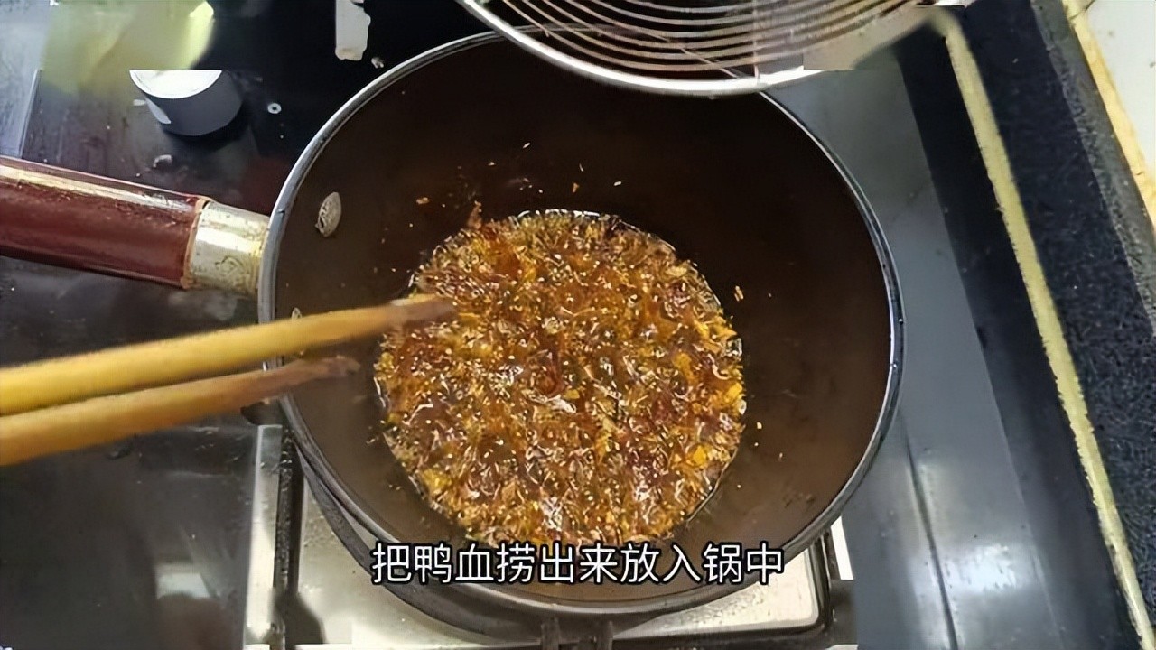 ·把鸭血焯一下水,鸭血煮两分钟关火,把它放一边。