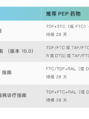 【答案】D。当前世界卫生组织及我国的指南方案里推荐的暴露后阻断的药物均可以作为艾滋病抗病毒治疗药物使用。以下是国际及国内相关指南推荐的PEP药物组合方案: