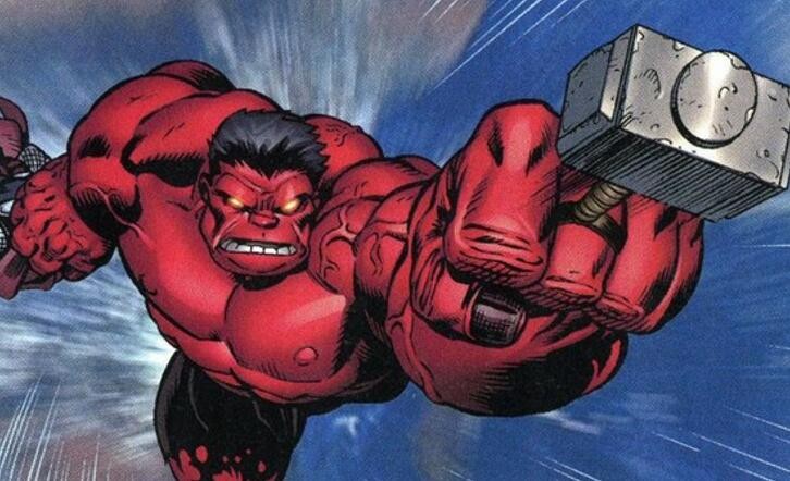 红浩克就比较夸张了,在得到雷神的武器之后,他竟然将雷神之锤当戒指一样戴在了手上,实在是另类,就是不知道此时的索尔会是什么感受!红浩克在未来登陆漫威电影也是趋势所致,他的故事也是相当的精彩。