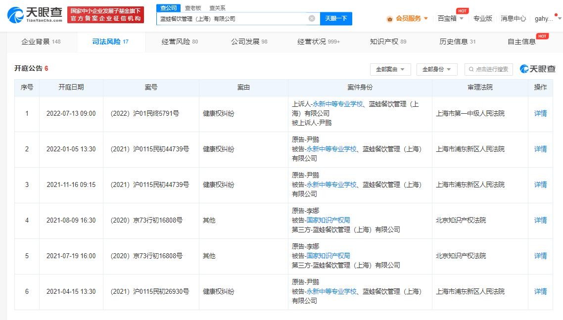 蓝蛙西餐厅曾因健康权纠纷被起诉