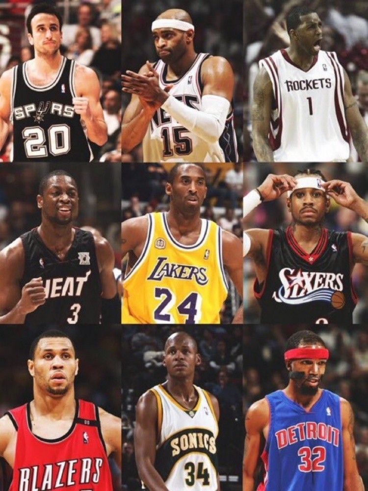 直播吧1月15日讯 美媒Hoops™今日晒出一张21世纪初联盟得分后卫盛世的组图,图中的球星有科比、麦迪、艾弗森、卡特、吉诺比利、韦德、雷-阿伦、罗伊和汉密尔顿。
