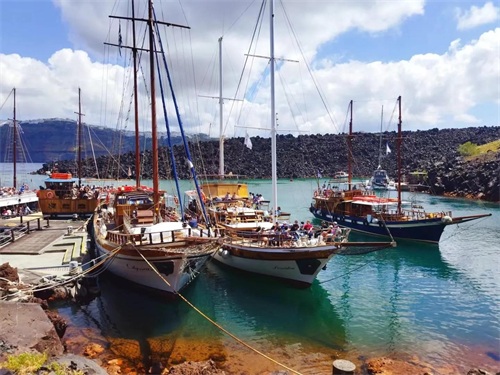 圣托里尼(希腊文:Σαντορίνη)是在希腊大陆东南200公里的爱琴海上由5个岛屿组成的岛环,其中2个是火山岛的。从雅典出发乘坐渡船大概7个小时,乘坐飞机45分钟就可以到达。