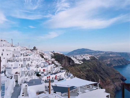 悬崖峭壁上的白色房子,大部份为酒店,基本每年都要粉刷。
