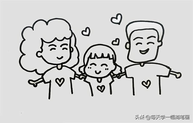 每天学一幅简笔画--一家三口手拉手简笔画图片