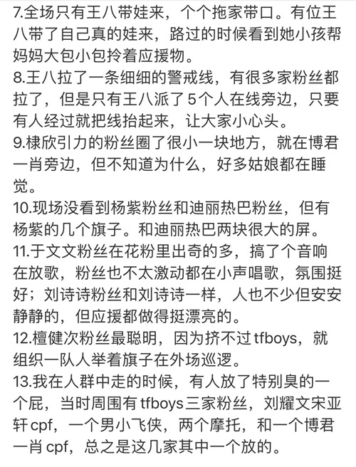 虽然是场状况百出的盛宴,但这背后也有着一些前方粉丝发来的现场搞笑事件,下面小编就带大家来一起看看各家粉丝的趣事合集。