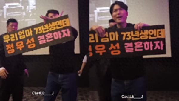 南韩「黄金单身汉」影帝郑雨盛近来主演的电影《12.12:首尔之春》,上映至今破700万观影人次,成为2023年度第二高票房的电影。他为了作品勤跑宣传,近日有一则影片在推特上疯传,一名影迷高举着求婚牌子,面对与他同年龄的粉丝求婚,他的反应相当幽默,逗笑所有人。