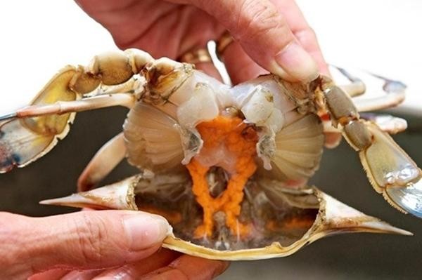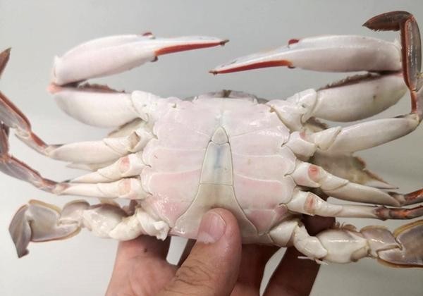 小贴士:图1为公蟹有尖脐(交尾器),即拇指按压处的三角形;母蟹则为圆脐。