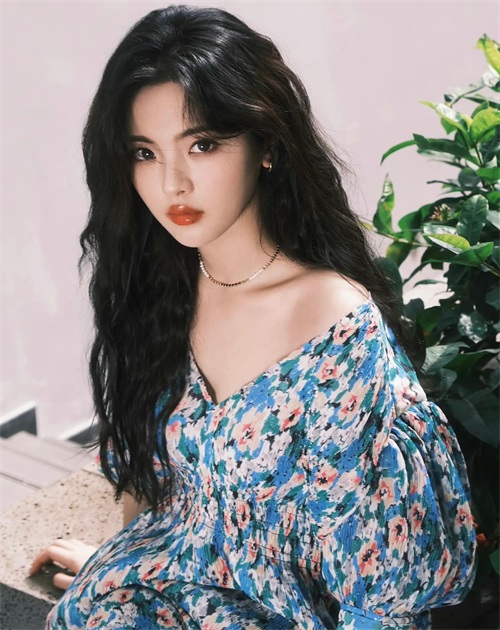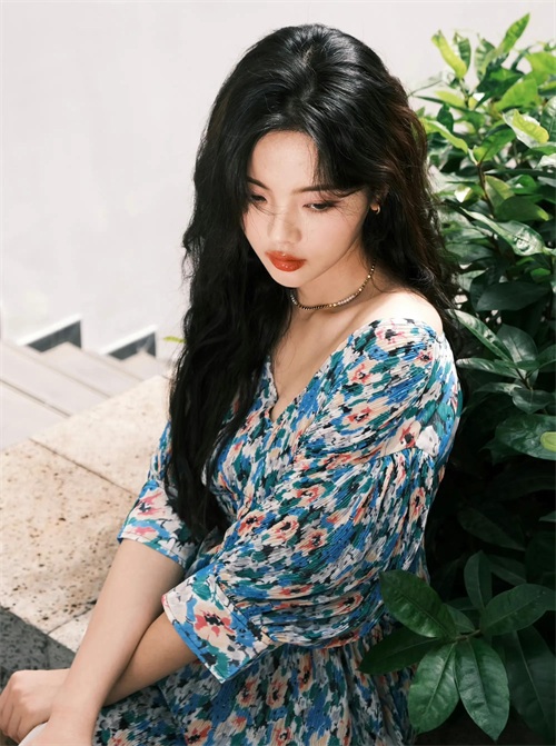 露肩深V碎花裙,又纯又欲。