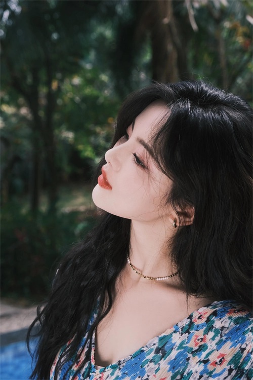 杨超越泳池大片 穿吊带深V碎花裙 清新甜美 又纯又欲