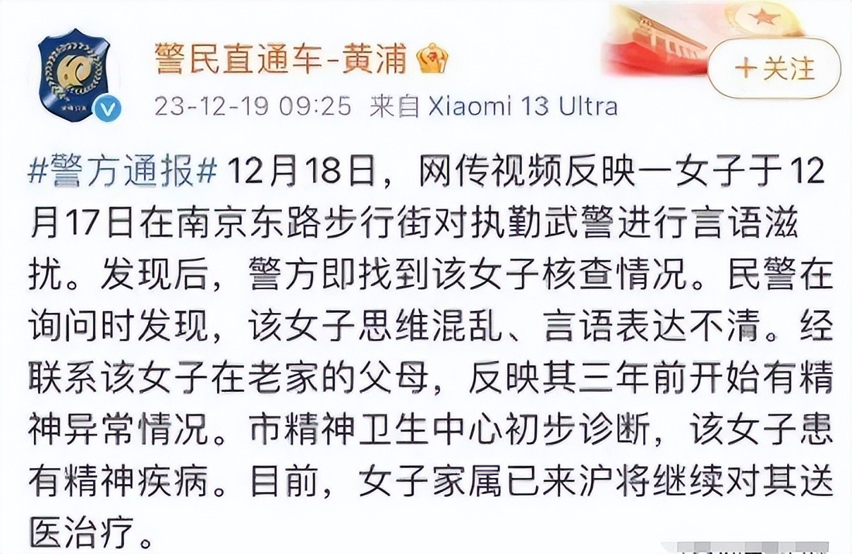 最近,上海一女子当街挑衅武警的视频在网上热传,引发轩然大波。就在网友纷纷要求严肃处理时,警方发布通报称该女子患有精神疾病,将不予行政处罚。这一结果让许多人大跌眼镜,纷纷质疑这个说法并不积极。