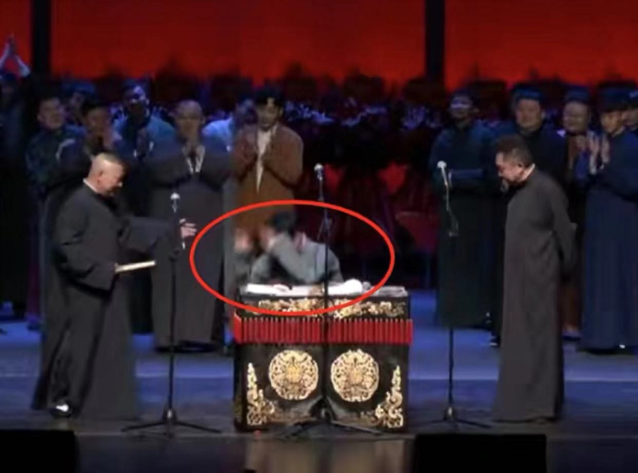 不过当时,演出的桌子挡到了他。于是,孟鹤堂和周九良也走上来,让张九龄再跪拜一次,因为之前那次被桌子挡住了,不作数。