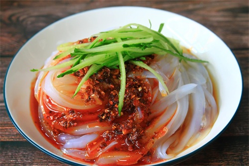 推荐理由:荞麦或土豆淀粉制成,配黄瓜丝、豆芽,清爽解腻。