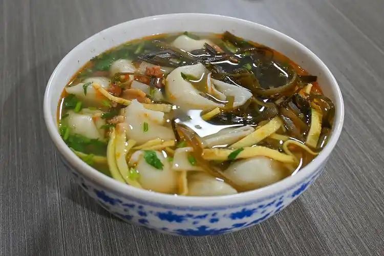 推荐理由:形似馄饨,馅料以豆腐、麻籽仁为主,汤底配菠菜、木耳,清淡鲜美。