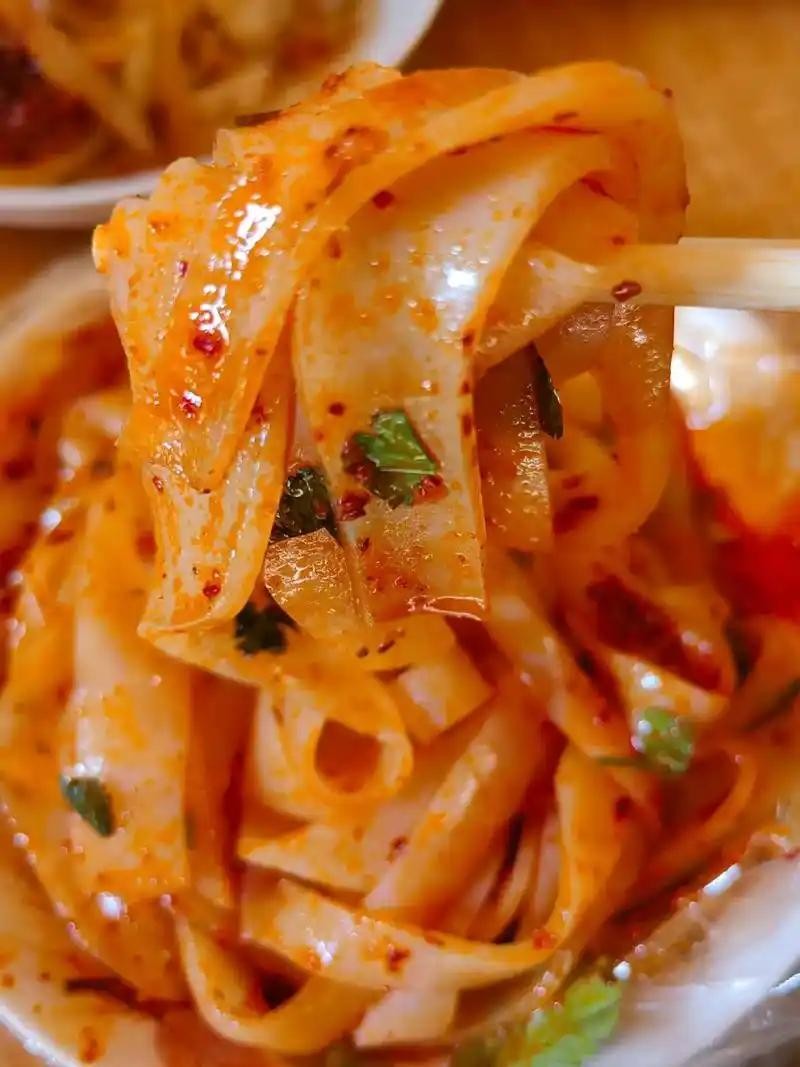 推荐理由:薄如纸、滑如绸,浇油泼辣子和黄瓜丝,酸辣爽口。