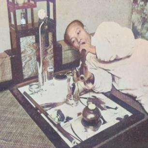 男子斜躺在床榻上,正在吞云吐雾,沉醉其中不能自拔