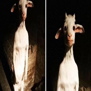 这只山羊长得有些诡异,眼神十分深邃。