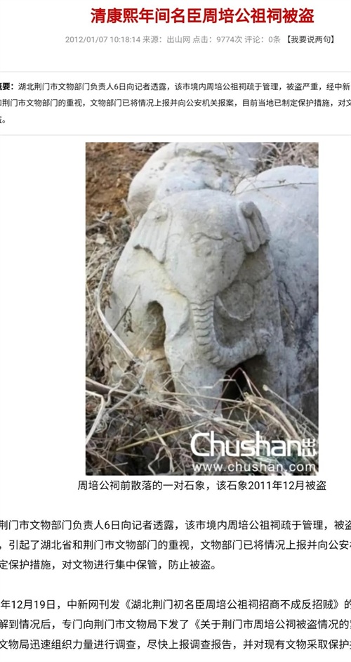 2011年冬天的一个夜晚,几个毛贼竟然把周培公祖祠给盗了,现场弄的乱七八糟。当年的新闻报道说“积极侦破,力争早日破案,追回被盗文物”。