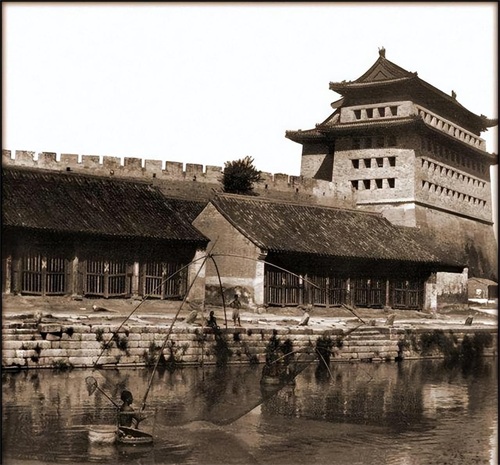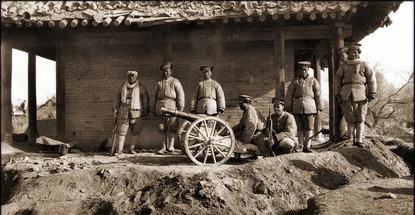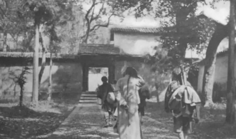 年,山西的一座古建筑下,有几名士兵在站岗。那个时期,他们可能是阎锡山的部下。