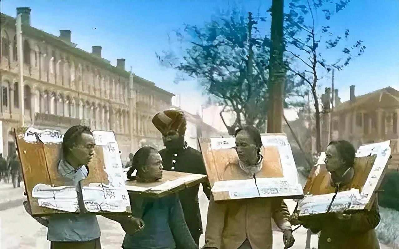 晚清的集市,一个老妇人愁眉苦脸的在卖东西