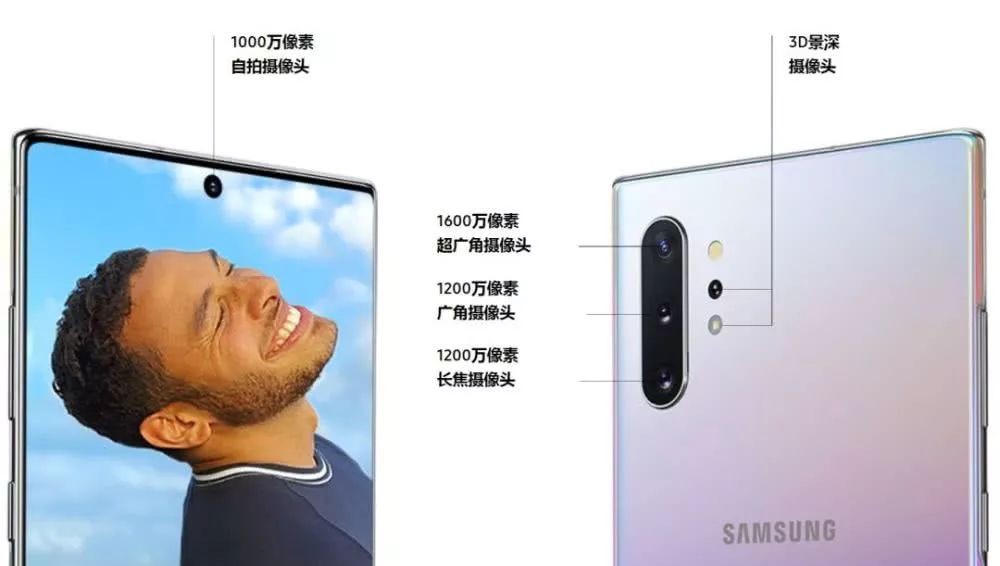 三星Galaxy Note 10+ LTE版本是一款高端手机,配置Exynos 9825芯片组、6.8英寸大型AMOLED显示屏与12Gb 的内存。后置摄像头装设四组传感器:26mm的标准主摄像头、13mm的超广角摄像头、52mm的远摄像头以及在人像模式下用来感测深度的专用飞时测距(ToF)传感器。