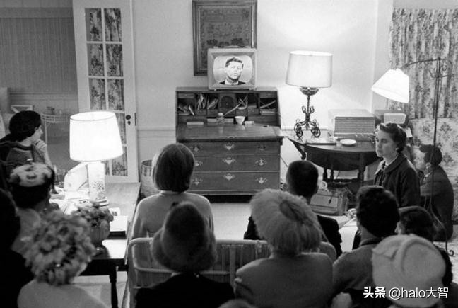1960年9月26日,杰奎琳肯尼迪和朋友们坐在马萨诸塞州家中的起居室观看丈夫对尼克松的电视辩论,这也是美国选民第一次观看总统候选人的电视辩论。