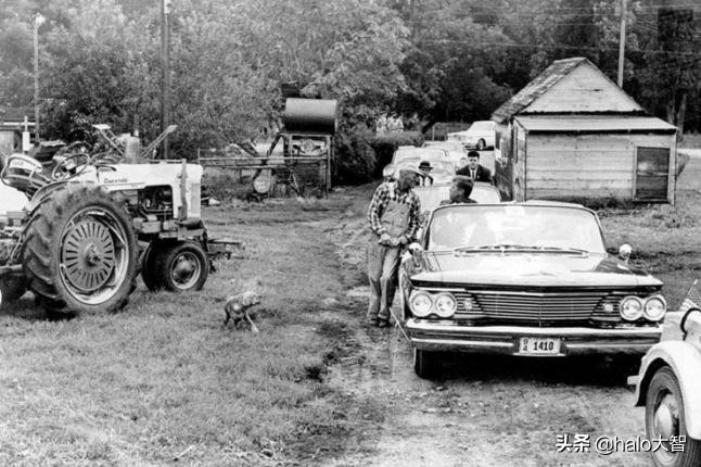 1960年9月22日,爱荷华州道奇堡的一个农场,肯尼迪靠在车旁和农夫詹姆斯.考克斯交谈。