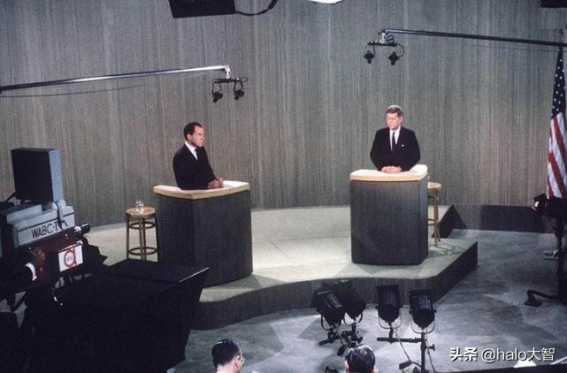 1960年10月21日,美国纽约电视台,民主党候选人肯尼迪与时任副总统的尼克松进行他们第四次电视辩论。相较于尼克松的语言技巧,肯尼迪在镜头前的表现更为优异。
