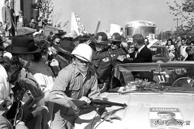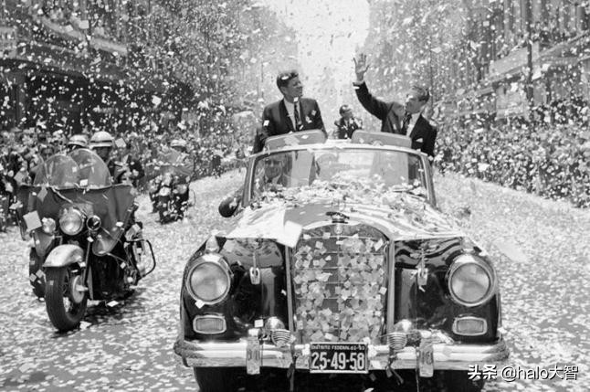 1963年11月22日,肯尼迪被暗杀的前几分钟,肯尼迪与夫人以及德克萨斯州州长约翰·康纳利坐在总统车内。几分钟后,肯尼迪被杀手连开3枪击中头部,不治身亡。
