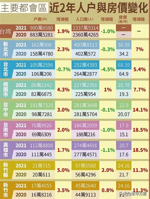磁轭,台湾省的住房没有公摊面积,交易面积就是室内住房面积。其实,世界上大部分区域的房屋,都没有公摊面积,例如俄罗斯的住房,阳台甚至不在交易面积内,属于赠送面积。在台湾省的几个主要城市中,作为台湾省的首府,台北市的房价最高。按照2022年的价格,台北市每坪的平均房价为68.39万新台币,大约折合15.4万人民币。