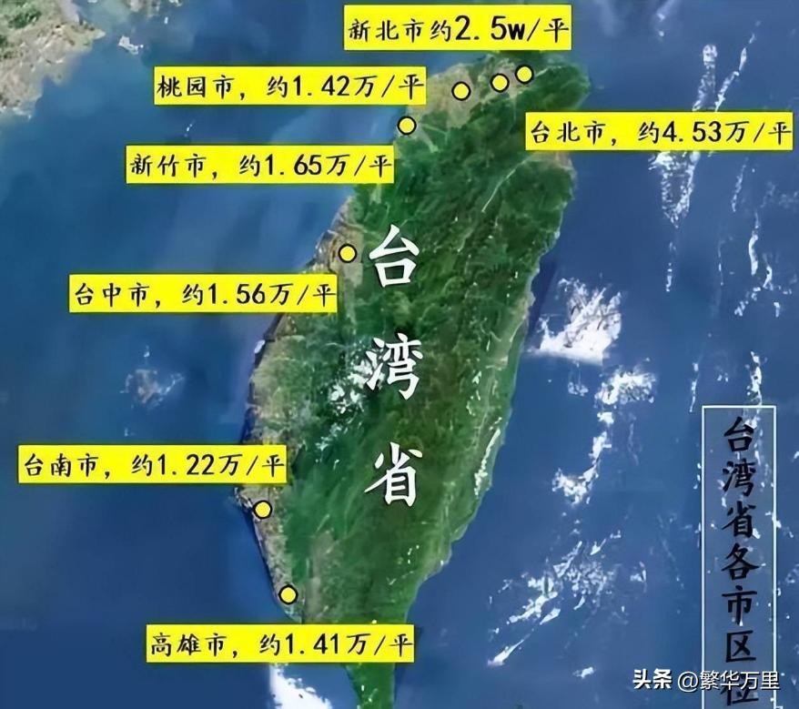 桃园市、新竹市、台南市、台中市、高雄市等几个城市,属于台湾省的区域性城市,这几个城市每坪的平均价格,基本上都在18万到25万新台币之间。大约折合4万到5.6万人民币之间,切换为平米以后,每平米的平均价格在1.3万到2万人民币之间。