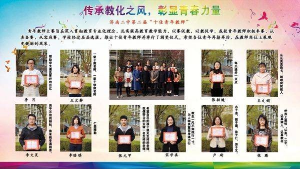 济南二中第二届“十佳青年教师”:李月、王文静、张枥键、王文娟(小)、李文昊、李晗琪、张元甲、宋学真、卢琪、张璐。