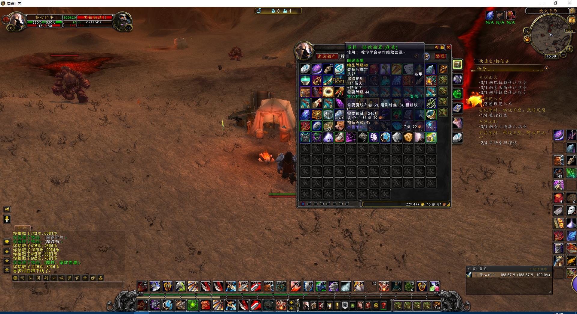 解密坐骑“清醒的梦魇”解密过程中需要的暗纹面罩,出自于裁缝。本来想去拍卖行买一个,一看价格奸商!快跑快跑。。。图纸掉落下图红圈区域,小怪名字:黑铁锻造师。可能小编的运气比较好,大概不到20个小怪就出了。有玩家三个小怪就出了。看来掉率不是很坑。