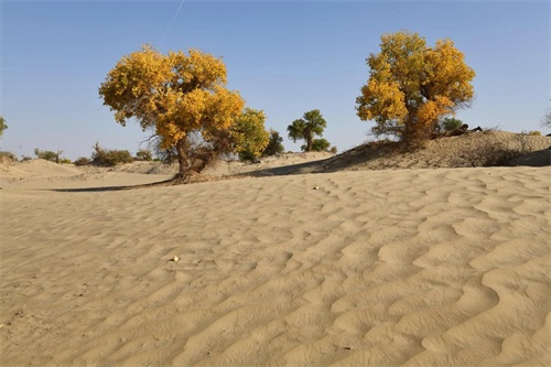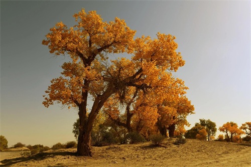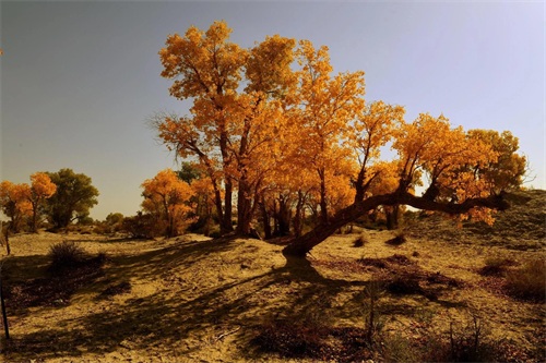 有时,胡杨们会与沙漠共舞,以豪情来回应沙漠的粗犷。