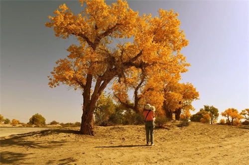 这一片片胡杨林,就这样与沙漠、塔河一起,陪伴在218国道两边。无论怎么看,都看不够它们的美;无论怎么拍,也拍不完他们的美。于是乎,我觉得这218国道还应该有一个与它的特征更相配的名字——那就是“胡杨大道”。