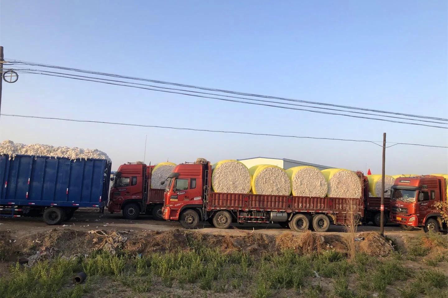 一路上,还会看到很多运输棉花的车辆。