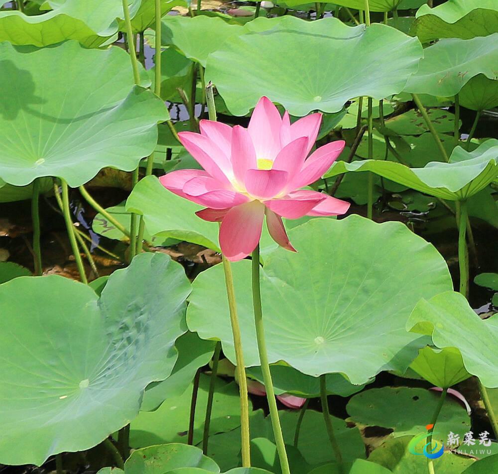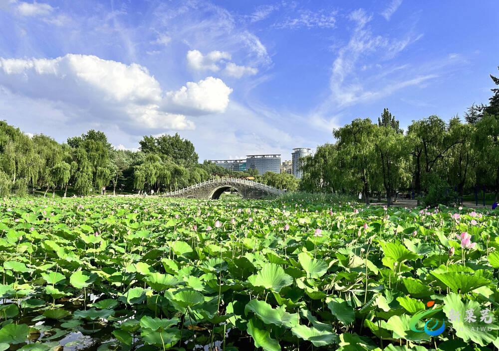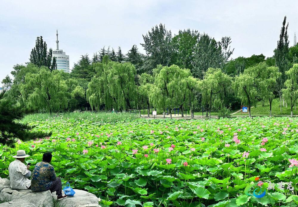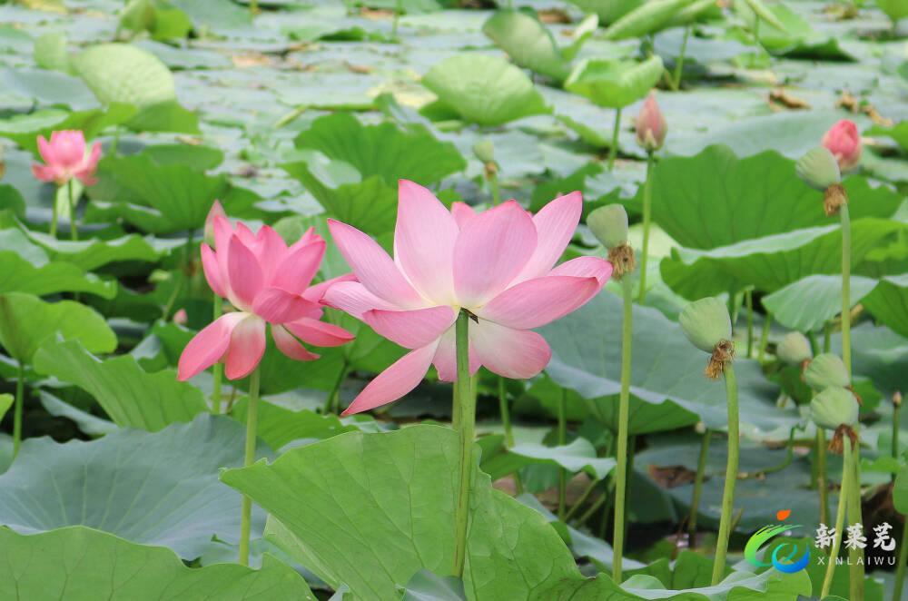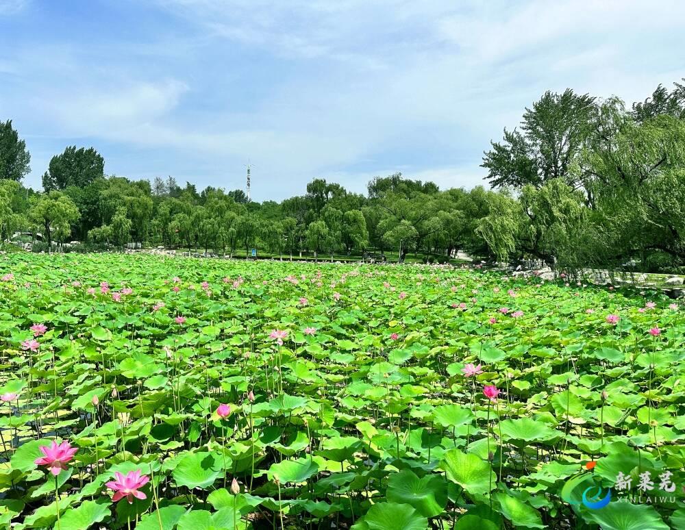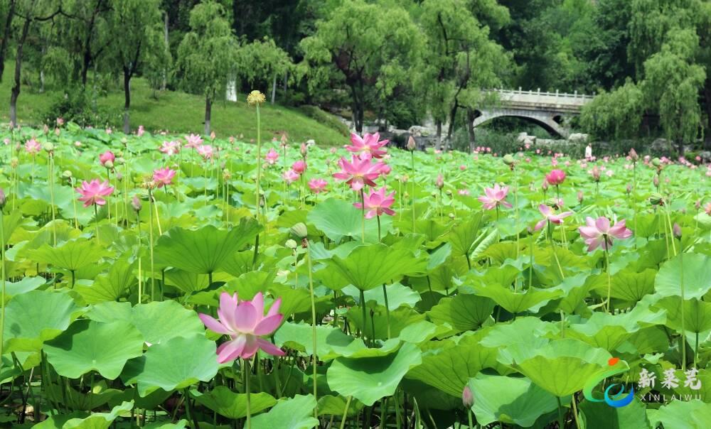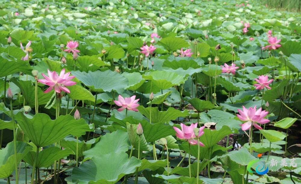 放眼望去,青荷盖绿水,繁花炫目粉红色的荷花点缀在大片翠绿色的荷叶之中,悠然、舒适、静美,宛如一位“犹抱琵琶半遮面”的少女。