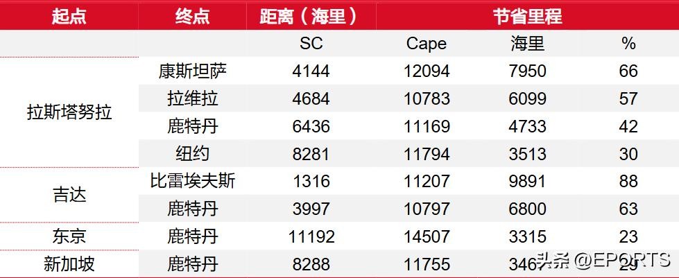 苏伊士(SC)航线与好望角(Cape)航线对比
